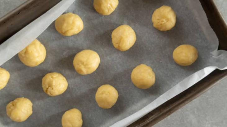 Küçük toplar halinde hazırlanan hamur fırına girdiğinde üzeri hafif çatlıyor ve kurabiyelere özel görünümünü veriyor. Piştikten sonra pudra şekeriyle süslenen kurabiyeler kısa sürede servis edilebiliyor. Bu tarifin güzel yanı ölçülerin herkesin evinde bulunan standart malzemelerle hazırlanması.