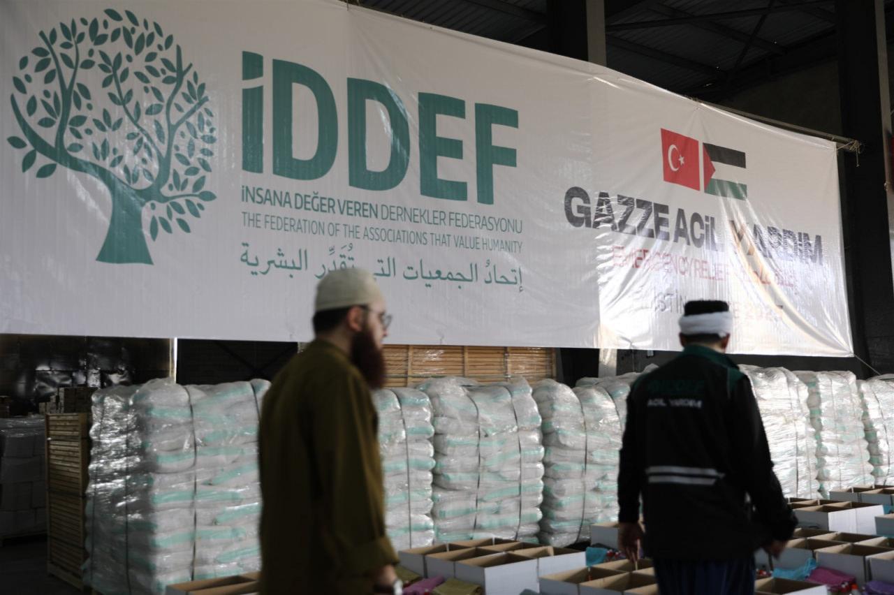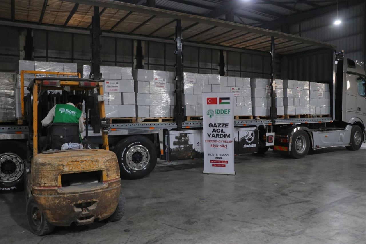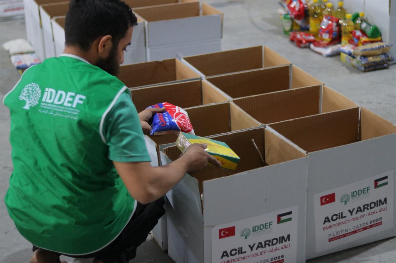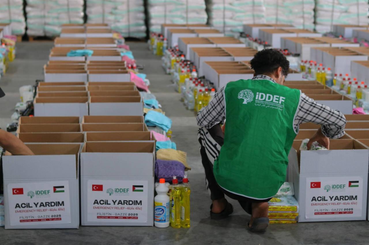 İDDEF’ten yapılan açıklamada, Mısır’ın başkenti Kahire’de bulunan lojistik depoda Gazzeli aileler için tek tek hazırlanan yardım paketlerinin tırlara yüklenerek Refah Sınır Kapısı üzerinden Gazze’ye gönderildiği ifade edildi. Açıklamada, şu ifadelere yer verildi: