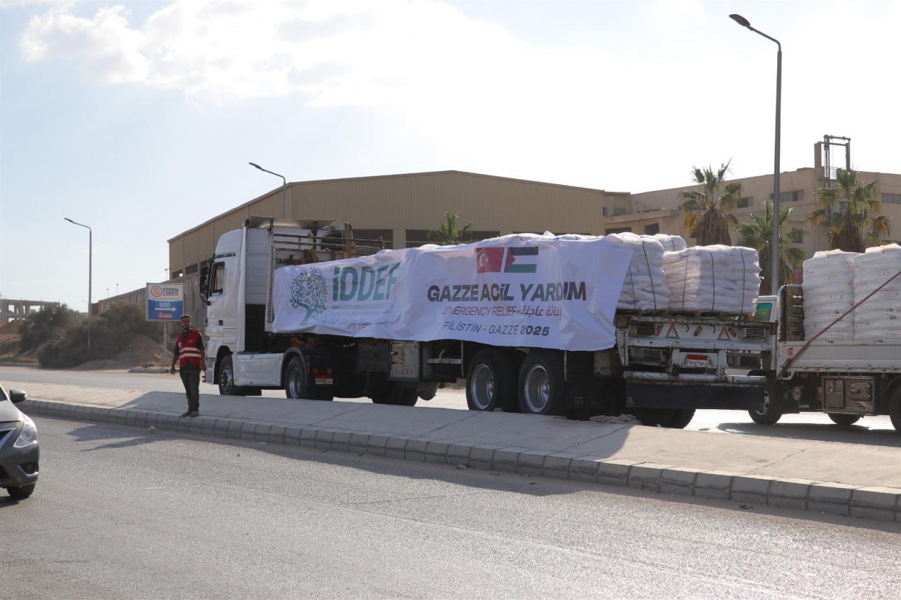 “Gazzeli kardeşlerimiz için hazırladığımız gıda kolilerini ve temel ihtiyaç malzemelerini tırlarımızla Refah Sınır Kapısı’ndan Gazze’ye ulaştırıyoruz. Her bir tırın kasasında bir annenin duası, bir çocuğun umudu, bir ailenin yeniden hayata tutunma mücadelesi var. Gıda ve un yardımlarımız açlığı hafifletecek, hijyen setleri hastalıkların önüne geçecek, battaniyeler ve barınma malzemeleri ise soğuk gecelerde sığınak olacak. Gazze’ye yardım eden tüm hayırseverlerimize teşekkür ederiz.”