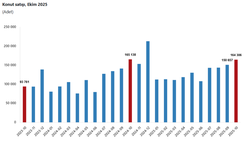 Türkiye İstatistik Kurumu (TÜİK) Ekim 2025’e ilişkin Konut Satış İstatistikleri verilerini yayımladı.
